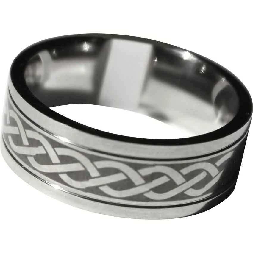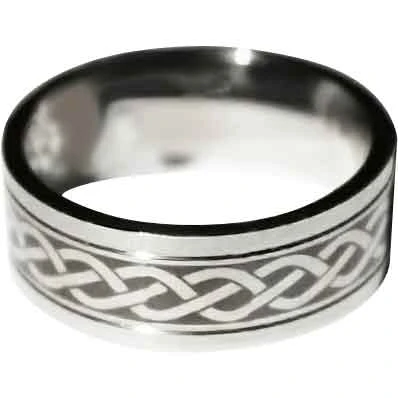 Show off your love for Celtic design any day with this Smooth Celtic Braid Band. Whether you are of Celtic heritage or have embraced the style as your own, this ring is a beautiful reminder of the spirituality the knots hold. Made of tungsten carbide, this band is quite resistant to tarnishes, and it is practically impossible to scratch. Perfect for the ring-wearer with allergies, this ring is also hypoallergenic. Showcased on the outside of the ring is a strand of silver lines weaved together into a Celtic knot on a dark gray background. The outside is smooth and shiny, giving it a glossy finish. With comfort in mind, the inside of the ring has been smoothed and rounded for the perfect wear. This Smooth Celtic Braid Band is not only a great choice for your own collection, but it is also a stunning gift for anyone you love.