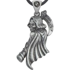 The haunting Soulbringer Necklace will send chills down your spine if and when you are brave enough to put it around your neck. This original portrayal of the grim reaper will not disappoint and add new dimensions to your personal style. The full lead free pewter construction allows this medallion to have a stunning level of engraved detail. The hooded robe has fabric lines that appear to be waving in the wind. The skull face has hollowed eyes, a nasal cavity, and a menacing set of teeth. The scythe has been adorned with a floral pattern that runs along the handle and blade. The bail even has a unique symbol engraved into it to enhance the look of this accent. You can finally step up your fashion game with an epic accessory like the Soulbringer Necklace.