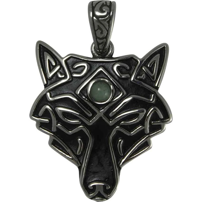 In the middle of the wolfs forehead, there is a green stone. The circular stone sits inside of a diamond shape. This stainless-steel Viking pendant makes a great addition to a variety of outfits and ensembles.