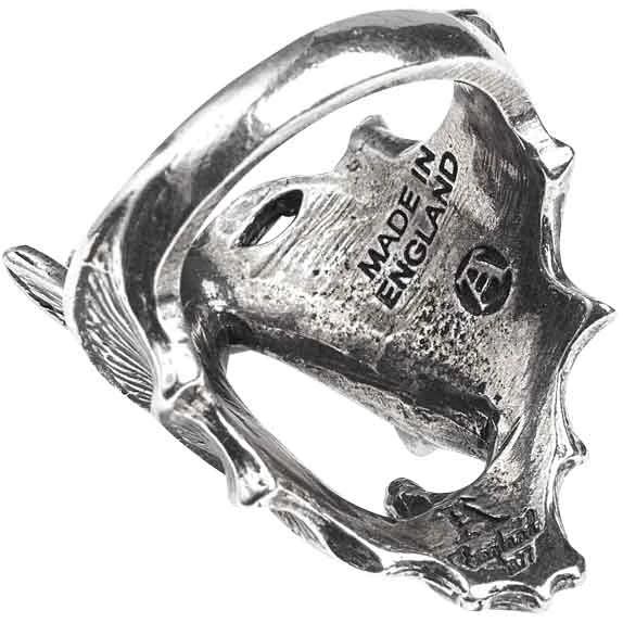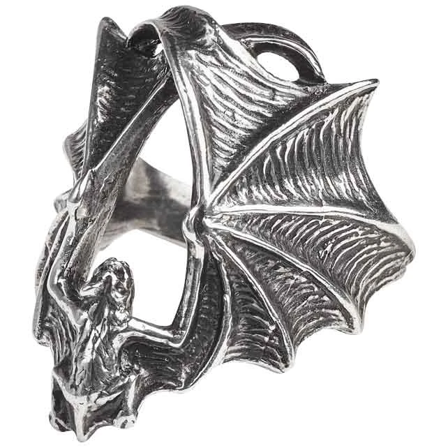 Under the cover of night, the vampire creeps silently in the form of a bat toward his next victim, eager to drink the blood that sustains him. Many images such as this can be imagined when gazing upon the Stealth Bat Ring. This large, antiqued English pewter ring takes the shape of a bat with enormous outstretched wings. A beautiful piece of Gothic jewelry, this ring will make a great gift for anyone who enjoys the Gothic or Vampiric styles!