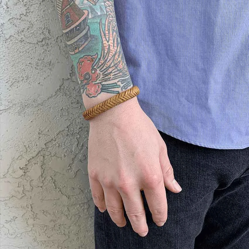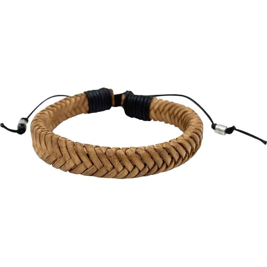 If you are looking for a rustic bracelet to finish off your costume, you should check out the Tan Braided Leather Viking Bracelet. This handmade bracelet consists of tan leather. The braided leather forms a thick cord. Thin black cord wraps around the ends of the braided leather. It ties the bracelet together. This tan bracelet fits a variety of Viking outfits or jewelry collections. You can add it to a modern wardrobe as well.