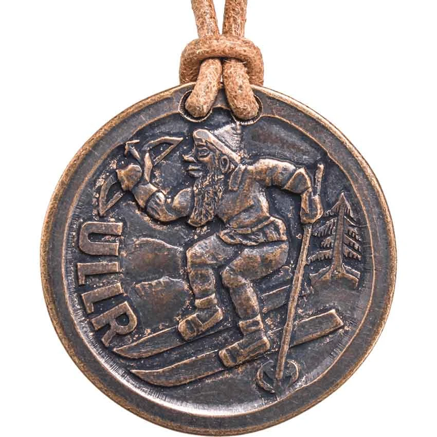 Any Viking looking for a necklace to finish off their outfit should make sure to check out the Ullr and Vegvisir Bronze Necklace. Made from solid bronze, this die-struck necklace comes on a brown leather cord. Made with traditional coining techniques, it depicts the Norse god associated with archery and skiing. He stands on skis on a mountain holding a bow. Next to him is his name. On the back of the necklace, there is the sigil Vegvisir. Vegvisir is a symbol meant to help someone find their way in rough weather. Overall, the coin has an antiqued finish to give it a realistic look. Finally, this necklace comes with an info sheet. This necklace makes a great Norse personal accessory or collectible.