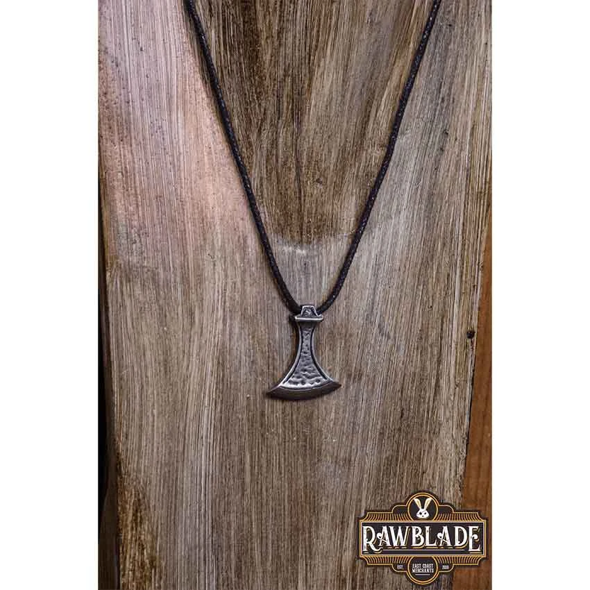 You look over the plans for the raid, pointing out your targets. The Silver Viking Axe Necklace hangs down from your neck. Made from Zamac, this handmade Viking necklace features an antiqued silver finish. It takes the shape of an axe head. The axe head has a fan-shaped blade. It features a rippled texture. The axe head pendant has a hole in its socket to allow the black waxed cord to run through it. This Norse necklace works equally well for medieval and Viking costumes as it does for modern outfits. It looks great with any Viking jewelry collection.