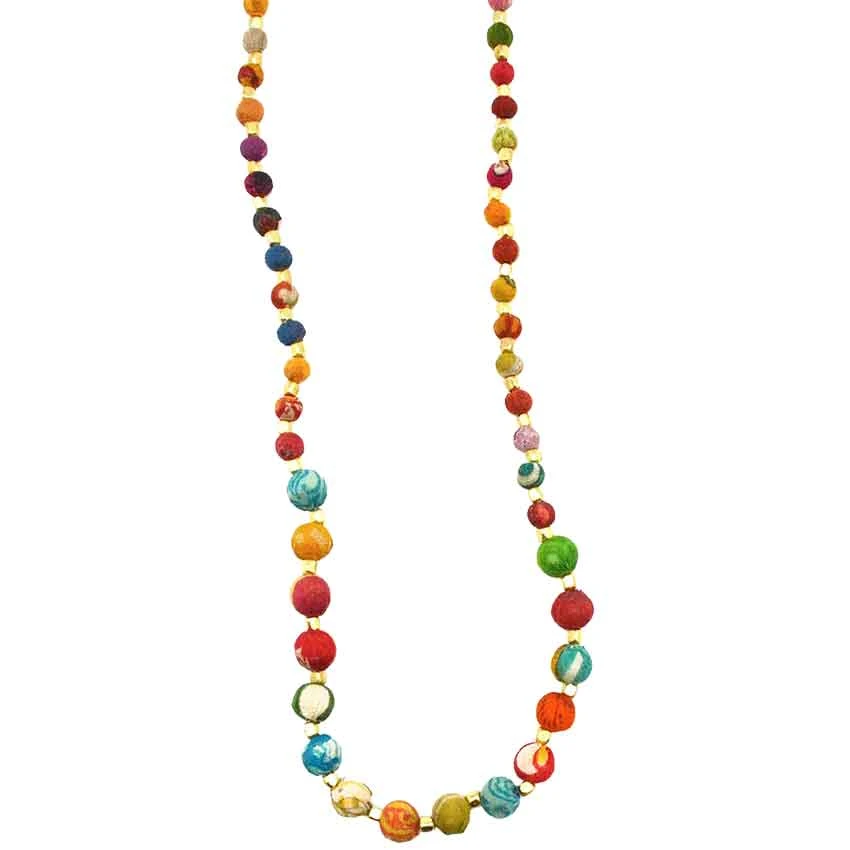 Add a touch of color to your Viking or fantasy look with the Viking Cloth Beaded Necklace. Crafted by hand, this necklace is made of fabric-wrapped wooden beads and small gold tone beads for a look that is both rustic and bright. Larger beads are used for the front of the necklace, while the sides are made up of smaller beads. Because the fabric used in this Viking jewelry piece is handcrafted from recycled cloth, each necklace will vary slightly from what is shown, resulting in a unique accessory to add to your fantasy or Viking outfit.