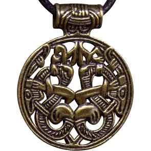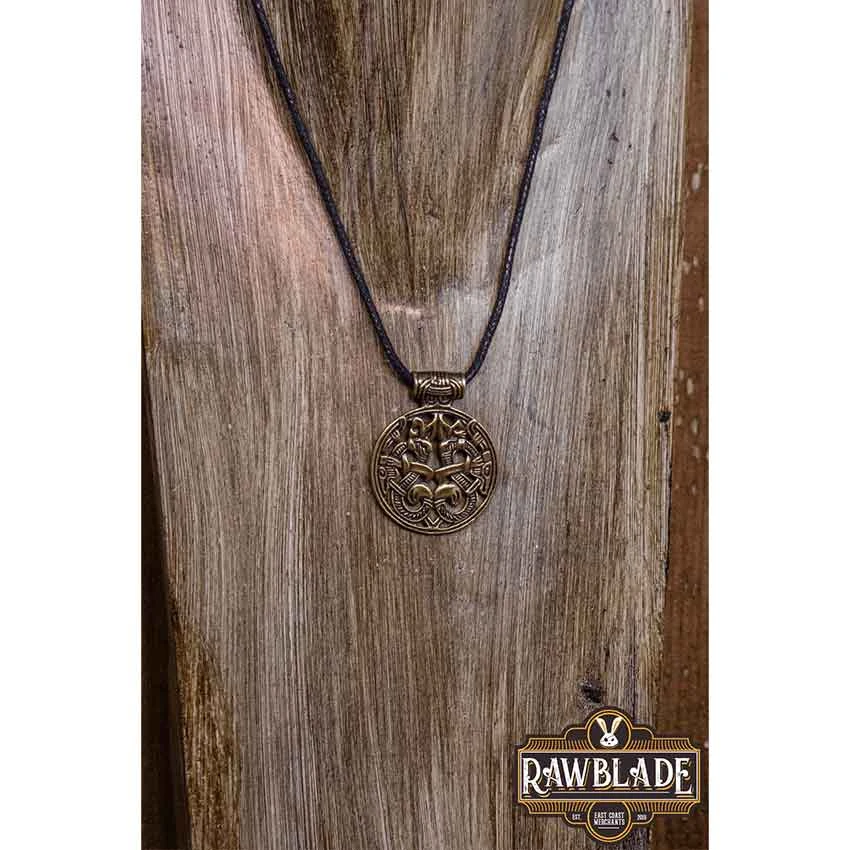 Use the Gold Viking Edekan Necklace to finish off your Valkyrie, maiden, or warrior outfit for your next reenactment or faire. Made from Zamac, this handmade Viking necklace features an antiqued gold finish. At the top, there is a tube-shaped bale that hangs on the included black waxed cord. The necklace has a circular cutout design. It features a stylized knotwork pattern. This Viking necklace makes a great addition to Viking and Norse jewelry collections.