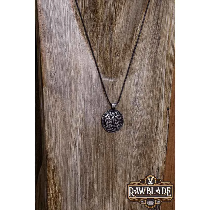 It is easy to add a touch of Norse style to your outfit or ensemble by wearing the Silver Viking Knot Necklace around your neck. Made from Zamac, this handmade Viking necklace features an antiqued silver finish. At the top, there is a bale that hangs on the included black waxed cord. The Norse necklace has a circular design. It features a stylized knotwork pattern. Dots form a border around the outside of the necklace. This necklace makes a great addition to a Viking wardrobe and Norse jewelry collection.