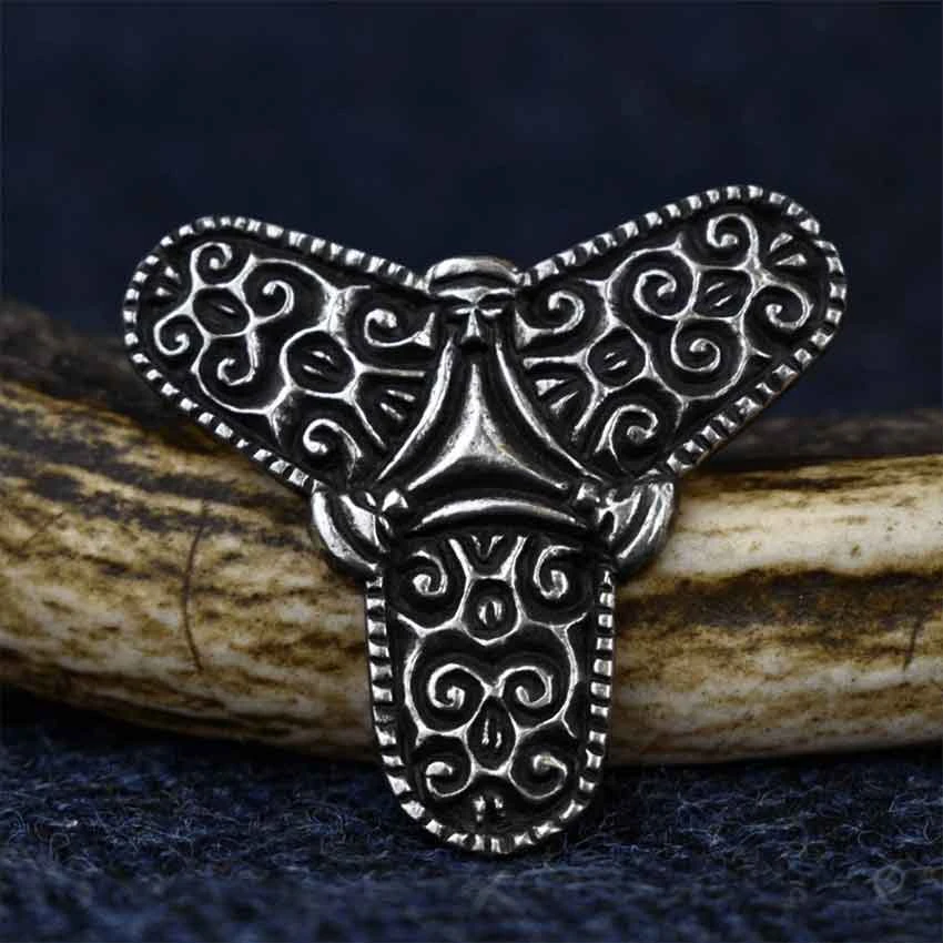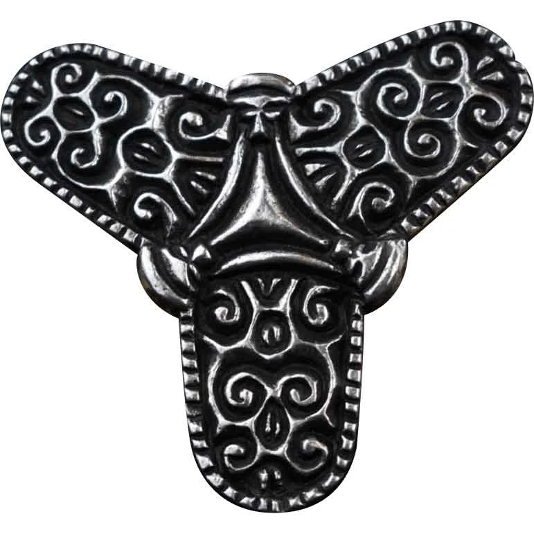 If you are looking to accent your Viking look with authentic style, make sure that you check out the Viking Trefoil Brooch. Made from lead-free pewter, this single hand-crafted Viking brooch has a three-lobed design based on an East Anglia original. The three-lobed design was popular with Norse women. Scrollwork adorns each lobe of the Norse brooch. Also, there is a triangular shape in the center. The back of the brooch has a bar pin for fastening it to a garment. In addition, there are three engraved runes on the back. This Norse brooch comes with care instructions. You can also use the brooch to pin clothing together. Add the Nordic brooch to your medieval outfit or Viking costume.