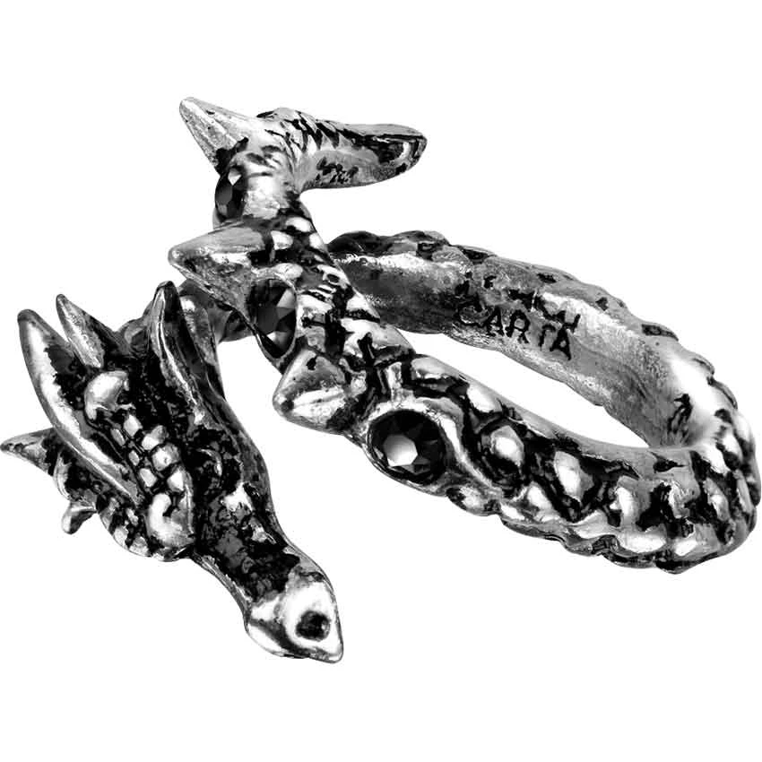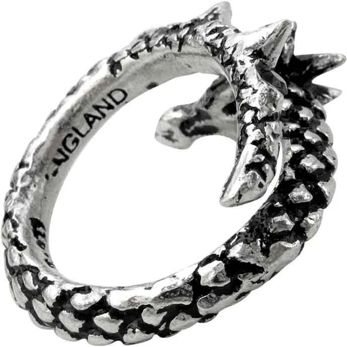 This ring is almost a force unto itself, possessing an impressive style and a level of detail that means it is bound to get noticed. When you wear the Vis Viva Dragon Ring, you will be sure to get noticed along with it. This ring cleverly combines gothic style with fantasy design, creating an accessory that features the best of both worlds. It depicts a serpentine dragon that wraps snugly around the finger, while still possessing all the detailing that one would expect, including intricate horns and fins that adorn its head, while its long body has fine scales and short body spikes. This dragon also has a gems encrusted into its hide, which take the form of three black Swarovski crystals that run along the spine. The ring is made from fine English pewter and is offered in six different sizes, ensuring that anyone can enjoy this great accessory. If you want something that is lively and powerful, yet subtle and striking at the same time, then perhaps you ought to consider this Vis Viva Dragon Ring, as it has all the impressive detailing that you want in an accessory, while still possessing a subdued design that works wonders with casual and contemporary looks of all sorts.
