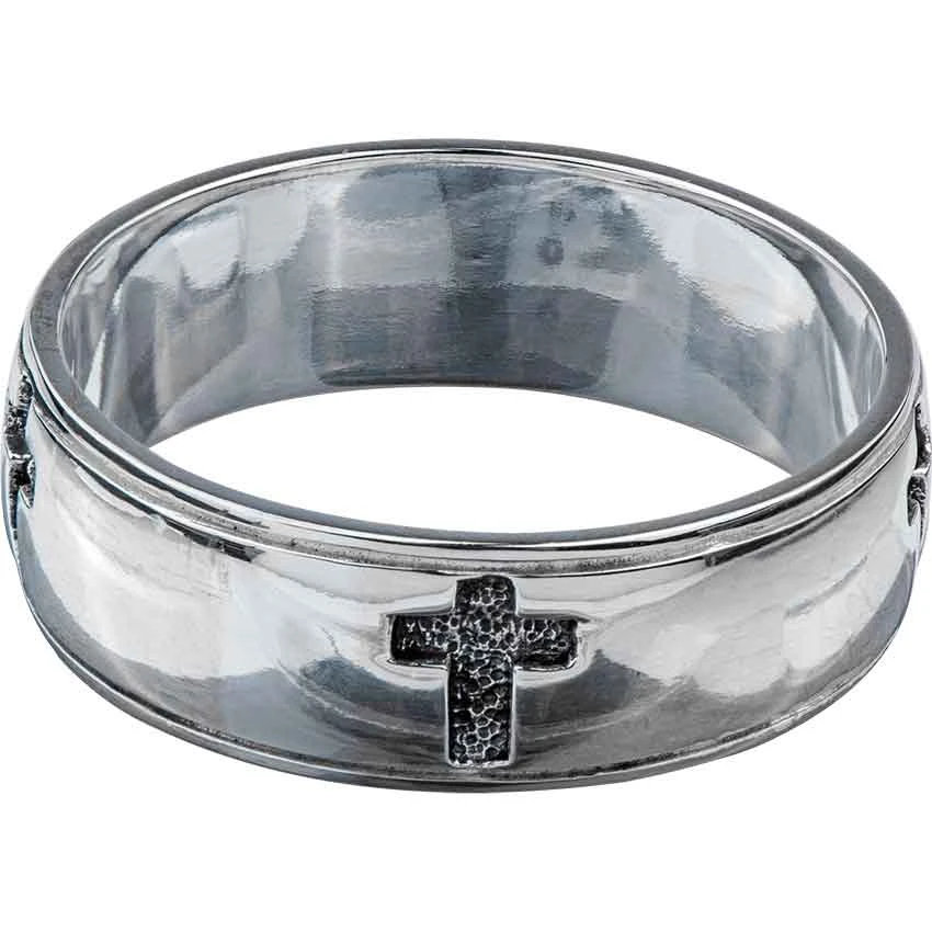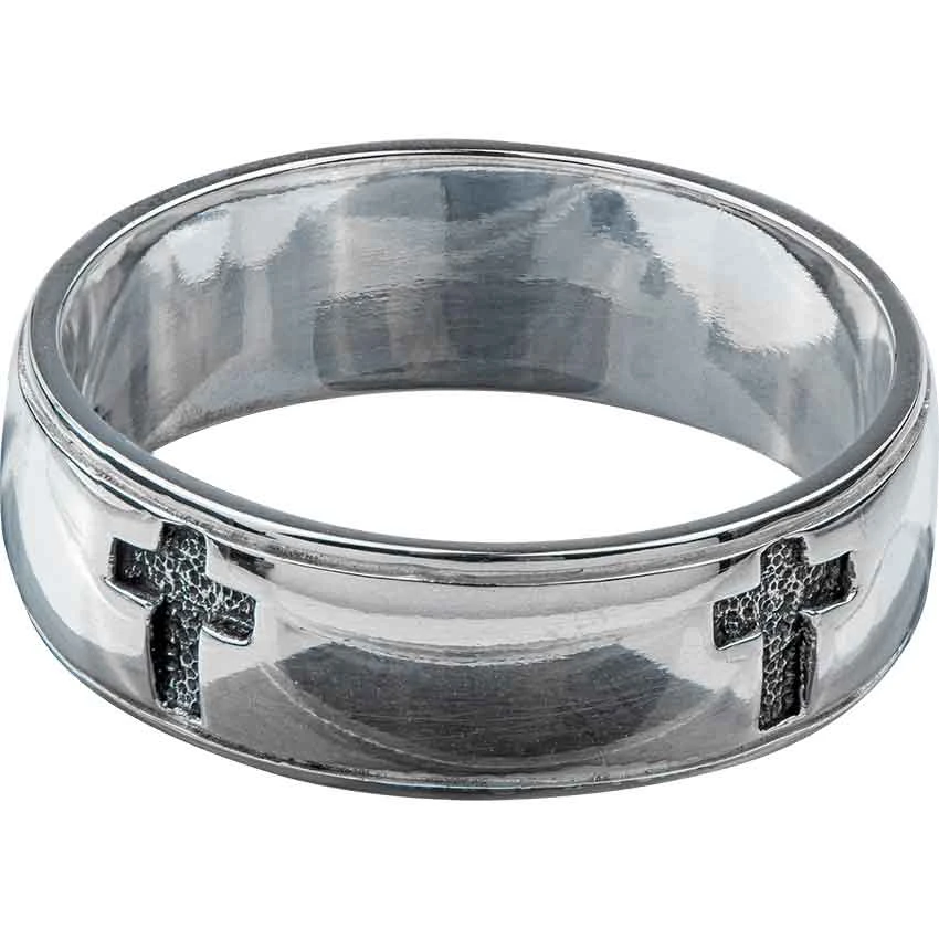 A symbol of faith and spirituality, the cross is an especially complex icon within medieval artwork. The White Bronze Engraved Cross Ring depicts a classic cross icon stamped into the smooth metal of the band, creating a stylish piece for anyone to wear. The vertical bar of the cross is longer than the horizontal. This medieval ring works great as a personal accessory or gift for someone special. Made from white bronze, the cross ring is plated with sterling silver that gives it a bright gleam. Perfect for men or women, the ring comes in US sizes 6 to 15.