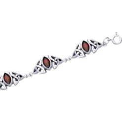 Combining the meaning of the Celtic triquetra with the beauty of shimmering gemstones, this Celtic link bracelet makes a fantastic accessory. The White Bronze Gemstone Celtic Knot Bracelet displays a gem between two trinity knots. Made from white bronze, the gemstone bracelet features sterling silver plating to give it a gleaming appearance. The ellipse-shaped synthetic gem comes in a number of options. Please note that certain gems may come with a price adjustment. The knotwork bracelet fastens with a spring ring clasp.