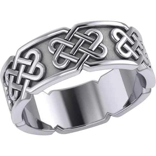 Offering a physical representation of the abstract of eternity, Celtic knotwork is created with no beginning or end to the design. The White Bronze Lattice Knot Band shows off repeating knots in a crisscrossing pattern. The Celtic ring works great as a personal accessory or gift for someone special. Made from white bronze, the knotwork ring is plated with sterling silver that gives it a bright gleam. Wear it on its own, or pair it with other pieces of our Celtic jewelry for breathtaking style! This ring comes in US sizes 6 to 12.