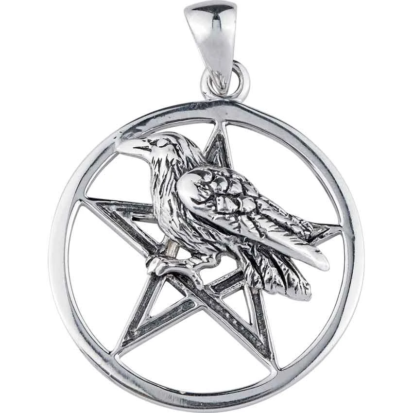 Ravens are classic totems of magic and mystery. The White Bronze Raven Pentacle Pendant combines this clever bird with a traditional symbol of the five elements and mystical forces of the universe in a striking design. Many people associate the raven with death and bad omens, but the curiosity and intelligence of the raven are the true source of its power. Ravens are cunning and opportunistic, never missing the chance to grab a meal or entertain themselves with a new trinket. Carefully crafted from fine white bronze, this raven pendant displays the bird as it perches in the center of a pentacle, making this piece the perfect option to add to Wiccan styles. The pentagram pendant hangs from a bail, so it is simple to string the design from the chain or cord of your choice.