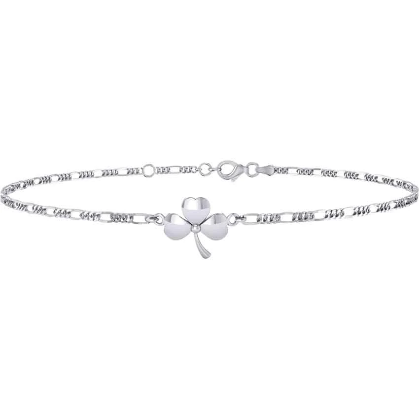 One of the most iconic symbols of Ireland, the shamrock appears as a young sprig of clover, most often with three leaves. The White Bronze Shamrock Anklet displays a delightful clover decoration as the focal detail. The smooth metal shamrock attaches to a thin chain that encircles your ankle. Made from white bronze, this Celtic anklet shows off sterling silver plating that gives it an eye-catching gleam. Enjoy the charming appearance of this anklet on its own or with other pieces of our lovely shamrock jewelry!