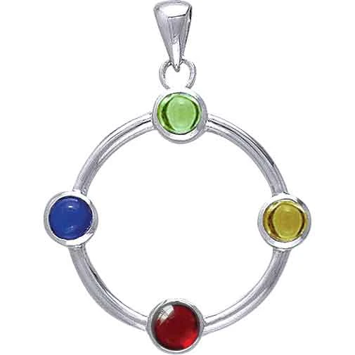Drawing from the Greek Anemoi, Wicca embraces the power of the winds and their respective meanings. The White Bronze Wisdom of the Winds Pendant offers a representation of the four winds with gem accents along a circle. A different color gem marks each of the cardinal directions. The cold North wind, Boreas, appears in a pale green hue, symbolizing death and change. The rain-bringing East wind, Euros, is marked by a white stone and stands for renewed life and intellect. The South wind, Notus, is red to represent its hot, fiery nature, offering the energy of curses, deception, and passion. The healing West Wind, Zephyr, has a blue stone, and it symbolizes love and fertility. This white bronze pendant makes a charming addition to any ensemble with its unique look. A necklace chain is not included but may be purchased separately.
