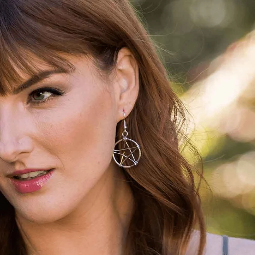 If you want a way to show off your witchy style, then make sure that you check out the Wiccan Wire Pentacle Earrings and their design. Handmade from brass, these silver-colored earrings come as a set of two. They feature fishhook backings. Thus, they require pierced ears. Each earring has an open ring design. Wire wraps around the ring to create a pentacle, which is a five-pointed star in a circle. Add these Wiccan earrings to your jewelry collection. They make a wonderful finishing touch to a variety of ensembles.